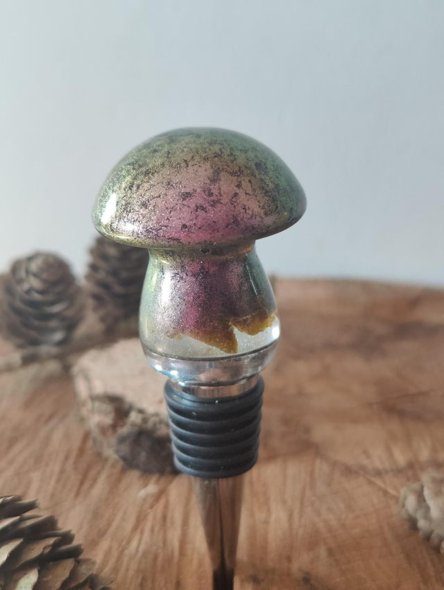 Bouchon de bouteilles réutilisable champignon holographique en verre recyclé