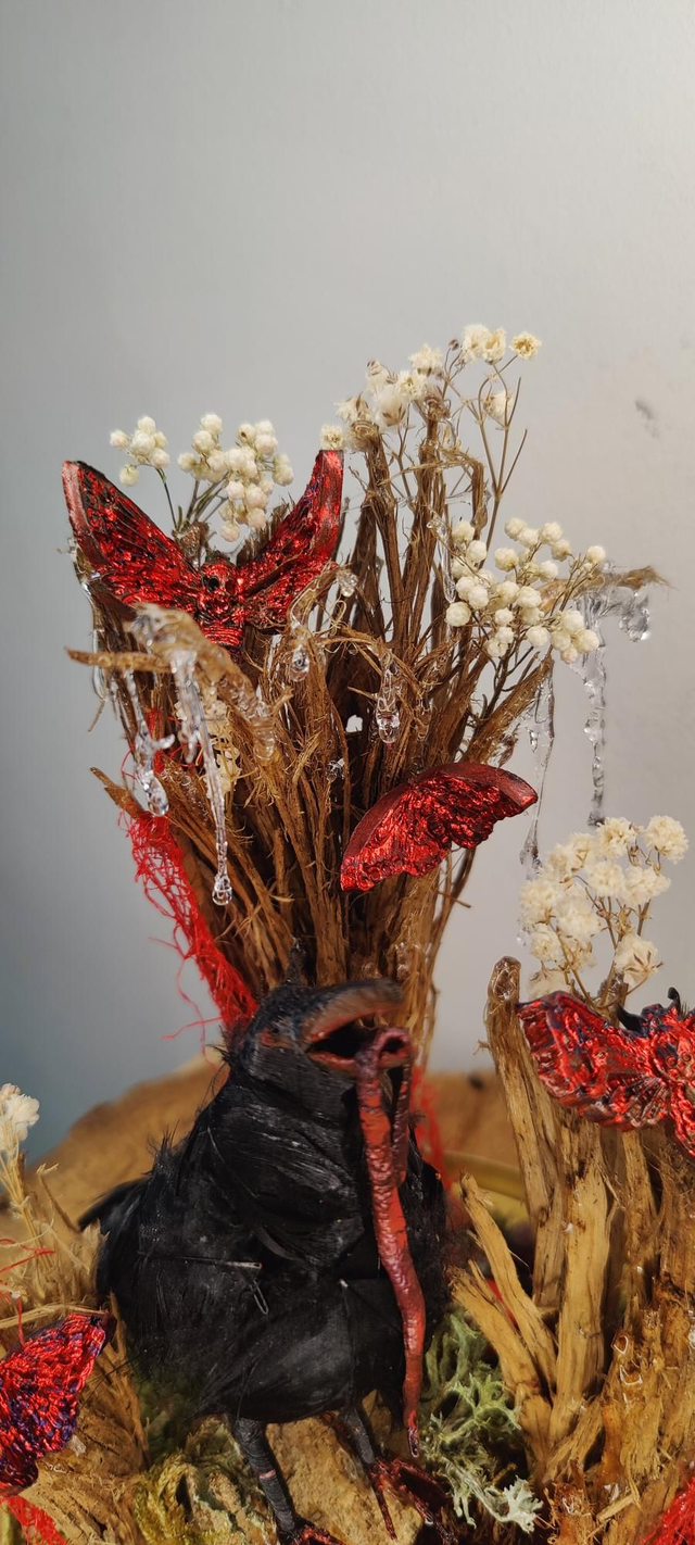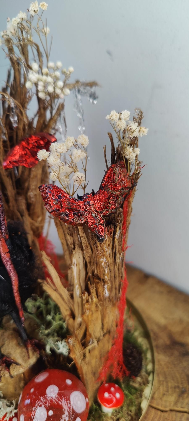 Laissez vous envoûter par cette création unique sous cloche réalisée à partir de bois et de végétaux naturels.