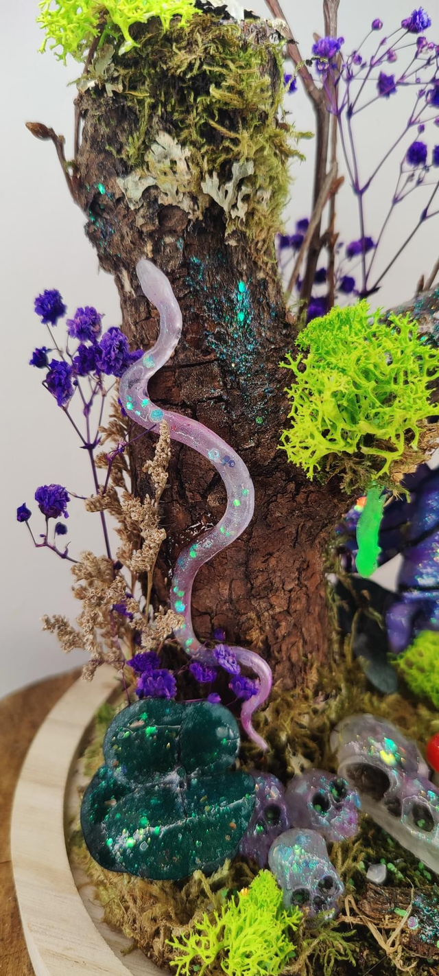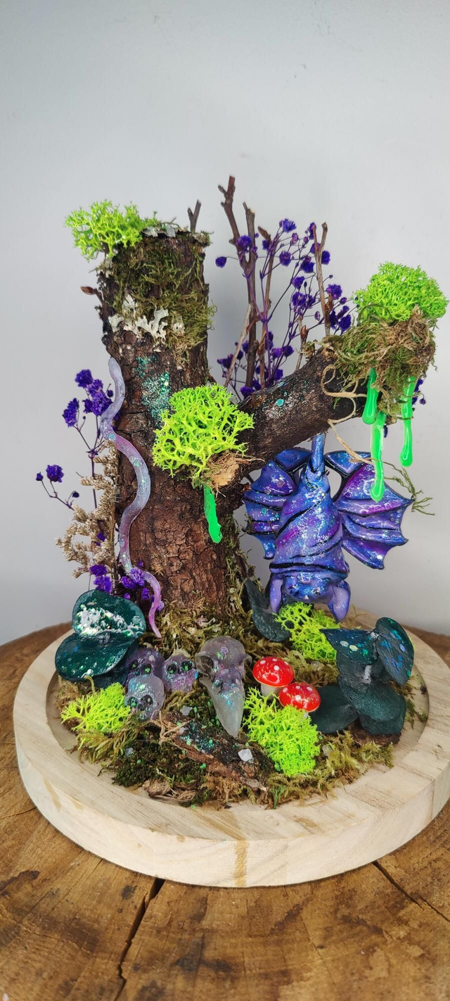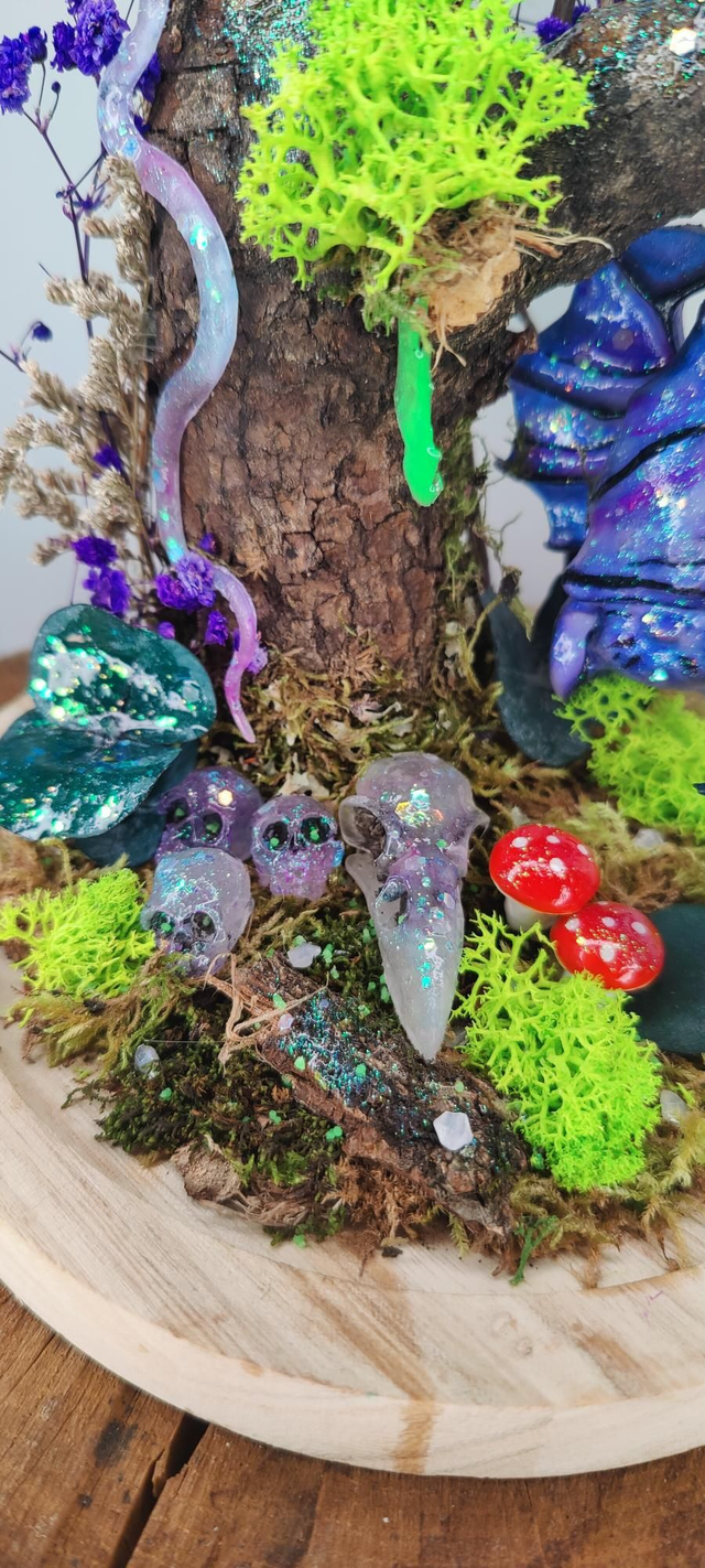 Laissez vous envoûter par cette création unique sous cloche réalisée à partir de bois et de végétaux naturels.
